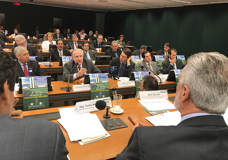 Atendendo a convite da Comissão de Agricultura, Pecuária, Abastecimento e Desenvolvimento Rural (CAPADR) da Câmara dos Deputados, o presidente e o diretor geral do Conselho dos Exportadores de Café do Brasil (Cecafé), Nelson Carvalhaes e Marcos Matos, respectivamente, participaram, hoje (24/08), de audiência pública no Plenário VI da Casa, em Brasília (DF).