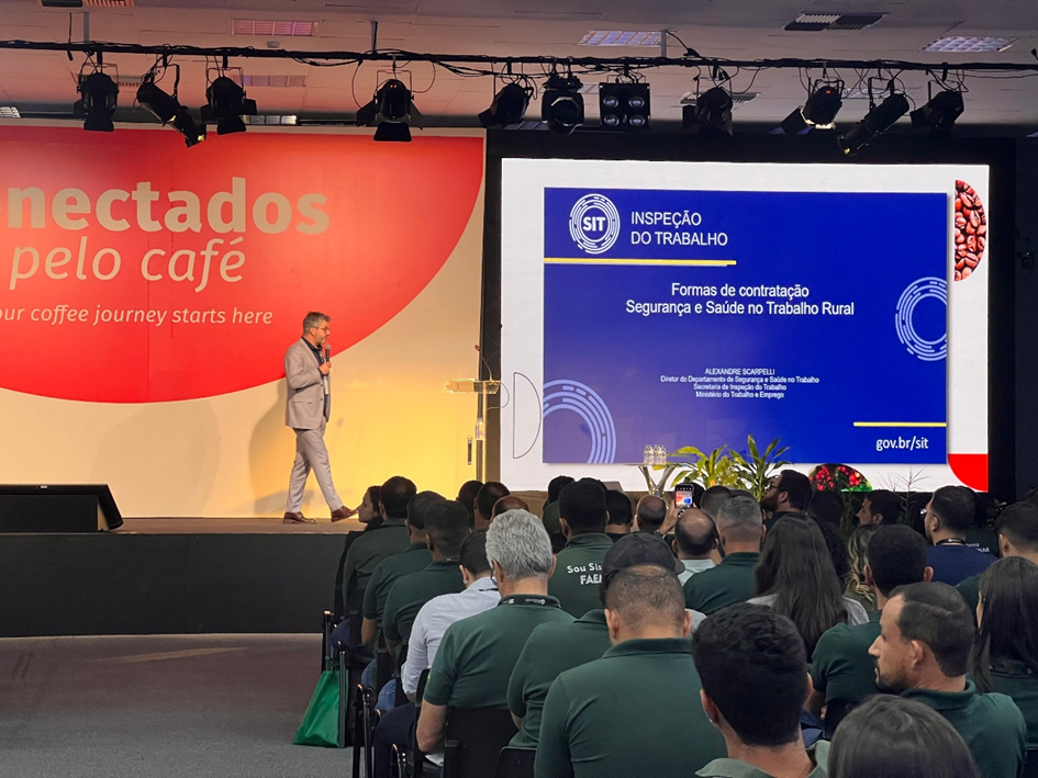 A formação foi conduzida pelo diretor do Departamento de Segurança e Saúde no Trabalho do MTE, Alexandre Furtado Scarpelli, que abordou temas essenciais para a atuação dos técnicos no campo, como as regras de devida diligência aplicadas à cadeia produtiva do café, os modelos legais de contratação de mão de obra e os aspectos práticos da Norma Regulamentadora nº 31 (NR-31), que trata de segurança e saúde no trabalho rural.
