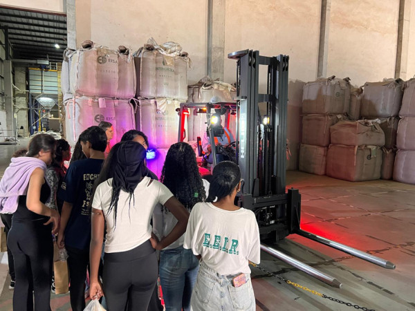Alunos do 1º ano do ensino médio realizaram uma visita técnica às instalações da empresa no município, aproximando-se da realidade do setor exportador e aprendendo as diversas oportunidades de carreira que a cadeia do café pode oferecer.