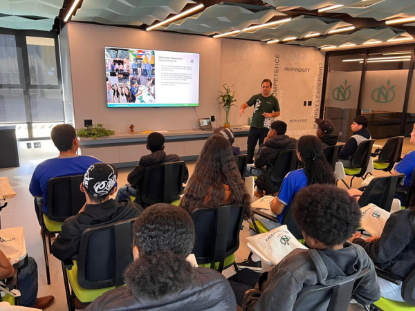 Um dos destaques da programação foi o depoimento de jovens colaboradores da empresa, que compartilharam suas trajetórias profissionais e reforçaram, de forma próxima e inspiradora, a importância dos estudos, do aprendizado de idiomas e do esforço pessoal na construção de uma carreira, conectando-se diretamente com a realidade dos estudantes.