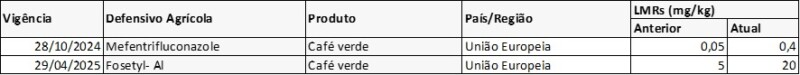 No âmbito do Programa Café Seguro, o Cecafé monitora diariamente, a partir da base de dados da FoodChain ID, alterações nos Limites Máximos de Resíduos (LMRs) de defensivos agrícolas com uso autorizado em café no Brasil, nos principais mercados de destino das exportações brasileiras.
