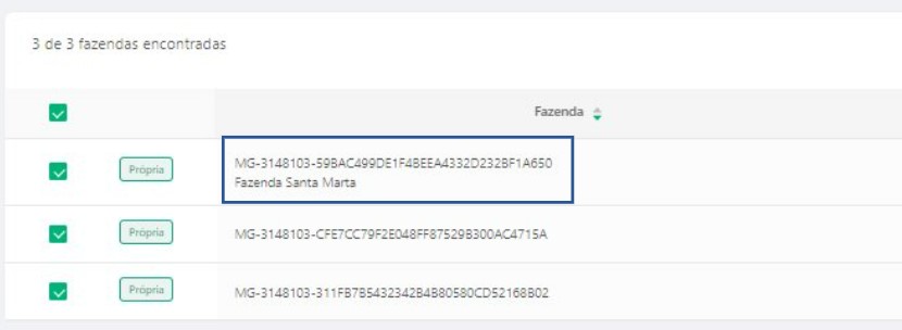 - Caso não exista o nome da propriedade, será apresentado somente o número CAR.