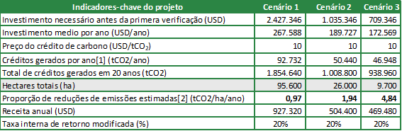 Com base nesses cenários, a equipe técnica da StoneX realizou simulações de fl uxo de caixa considerando que os processos de verifi cação e emissão de créditos ocorreriam a cada três anos, para um período de projeto de 20 anos.