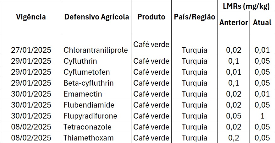 Home / Sustentabilidade / LMR Atualizações / Alterações de LMRs na Turquia